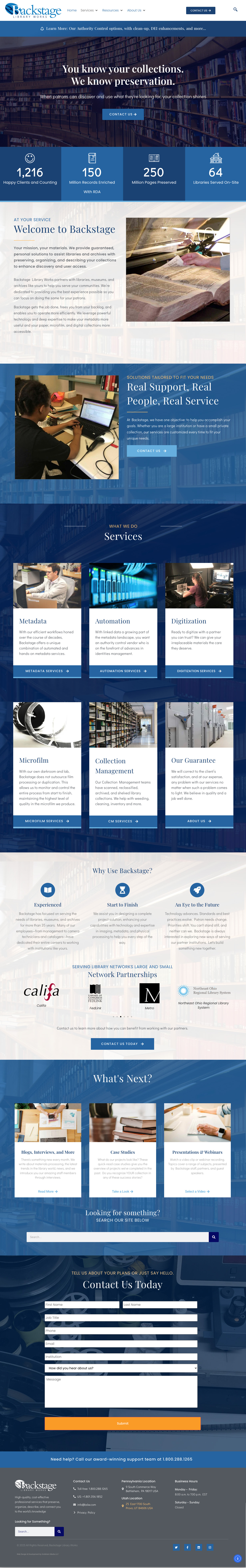 Backstage Library Works (BSLW) is a trusted partner to libraries, archives, and museums, offering tailored services in cataloging, digitization, metadata enrichment, and collection management. The website I designed showcases BSLW’s comprehensive solutions, including automation tools, on-site services, and microfilm preservation. Through a clean, user-friendly interface, the site reflects BSLW’s mission to connect institutions with the world’s knowledge by making their collections more discoverable and usable.